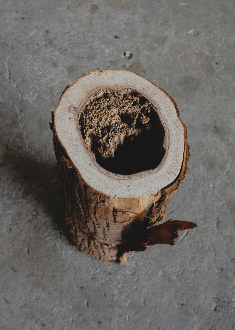Cast from Tree draws upon what already exists: the trees, though no longer alive, remain connected to life through the textures they hold, becoming part of other living forms.
