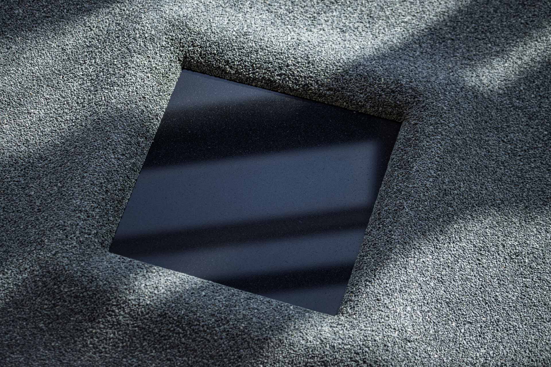 When the fountain has come to an expression of power itself, the water in the pool is no longer the focus. Statues are built, weathered, and replaced throughout history, but fountains are always splashing in different contexts. This site-specific work metaphorically recreates the archetype of a fountain. Without the subject for gazing, one may hesitate about where to look. The low quadrilateral appears to be a water surface or a pedestal, or perhaps it is just nothing.